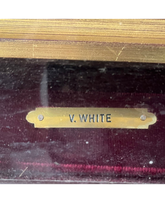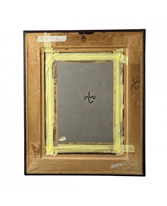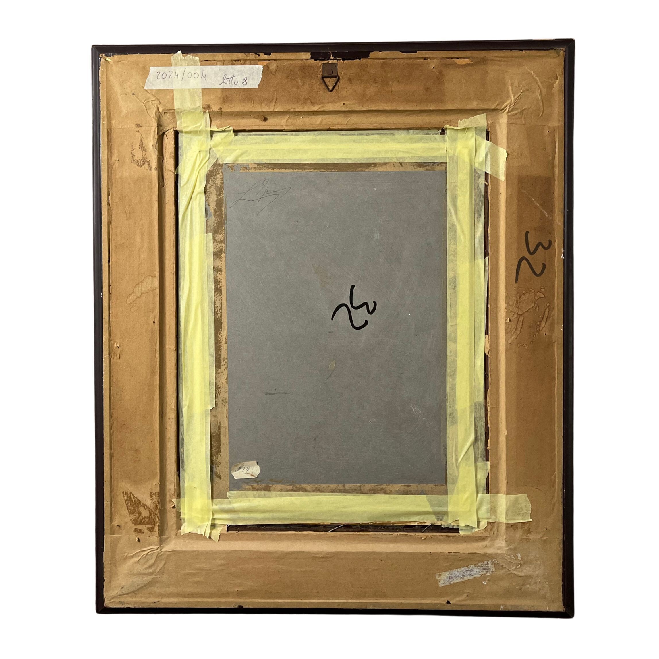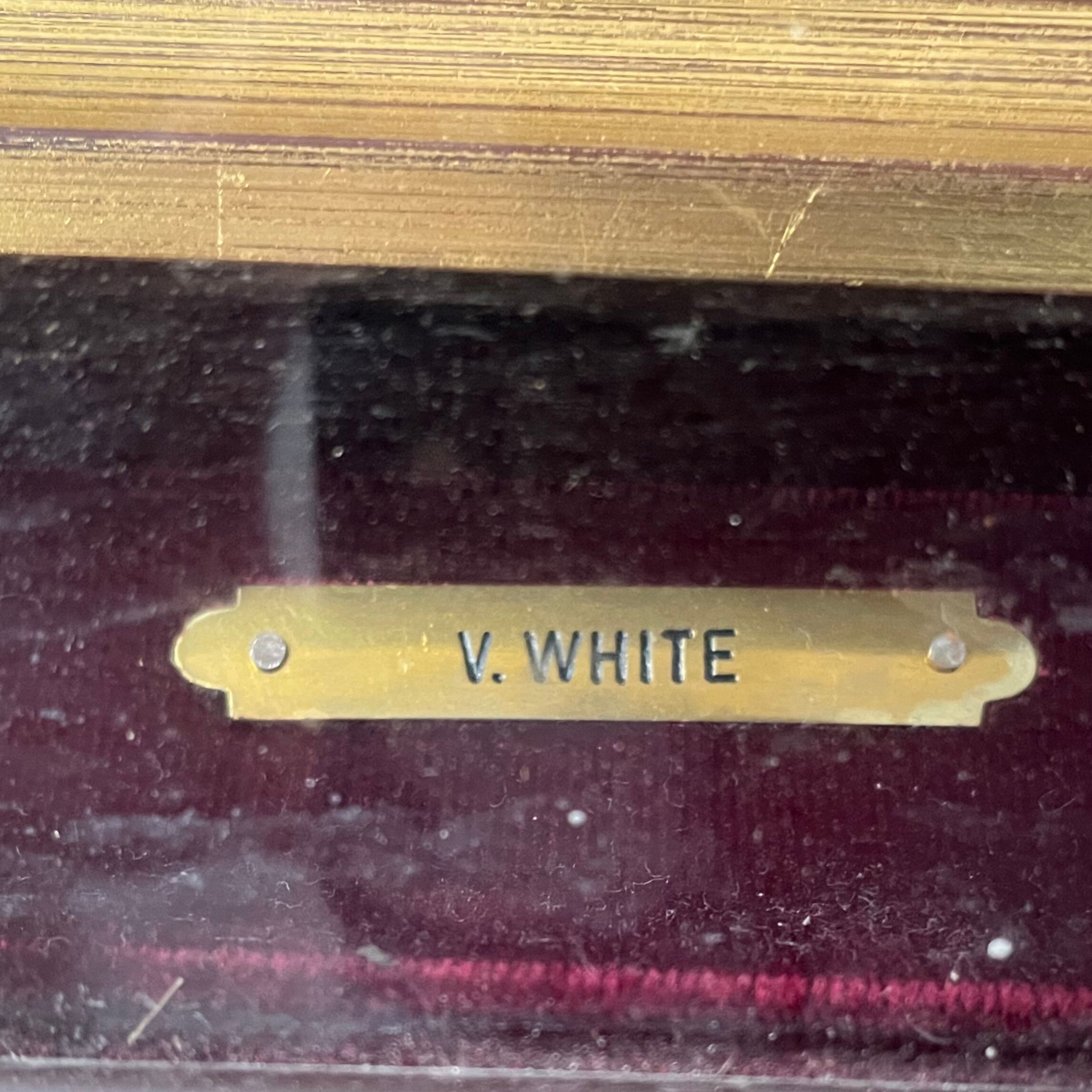 Oil painting on panel, 20th century period, depicting an interior courtyard. Inside frame dimensions: 30x40 cm Signed in the bottom left by V. White.