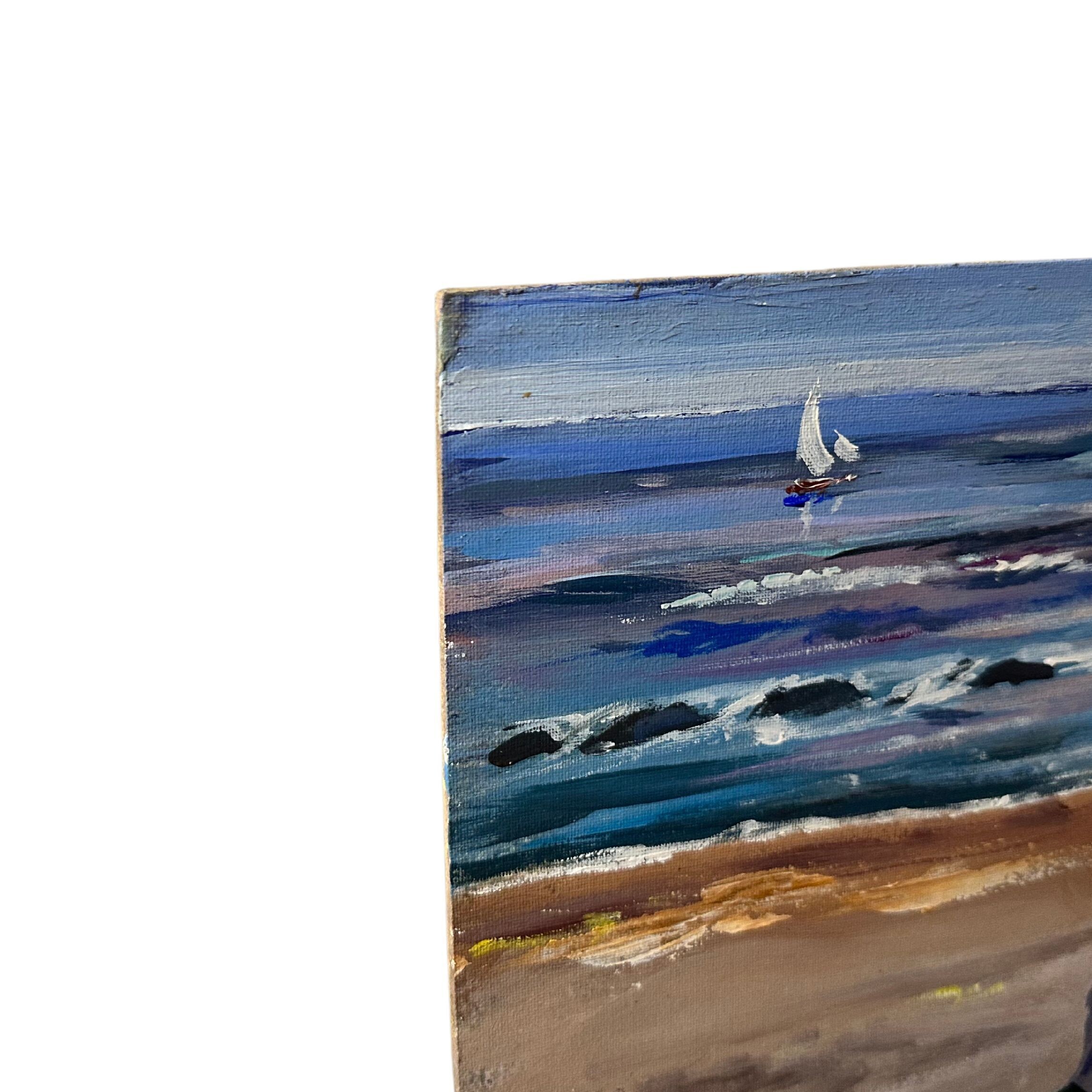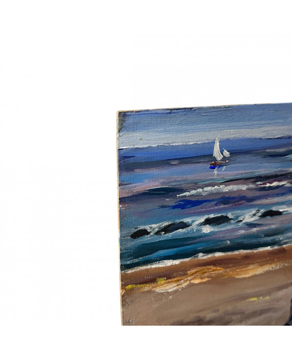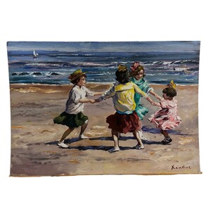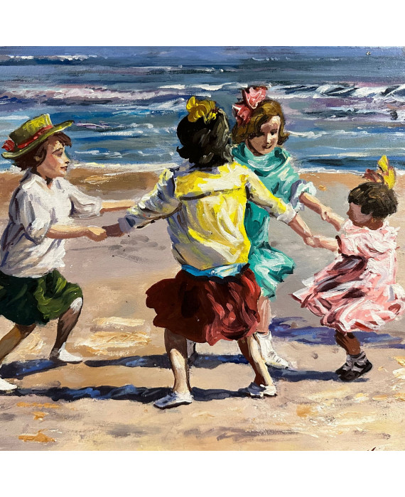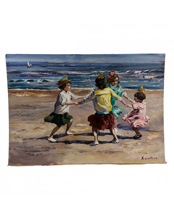 Oil painting on canvas attached to cardboard, 20th-century Continental school, depicting Sea Games. Dimensions: 50x35 cm. Signed by an unidentified artist.